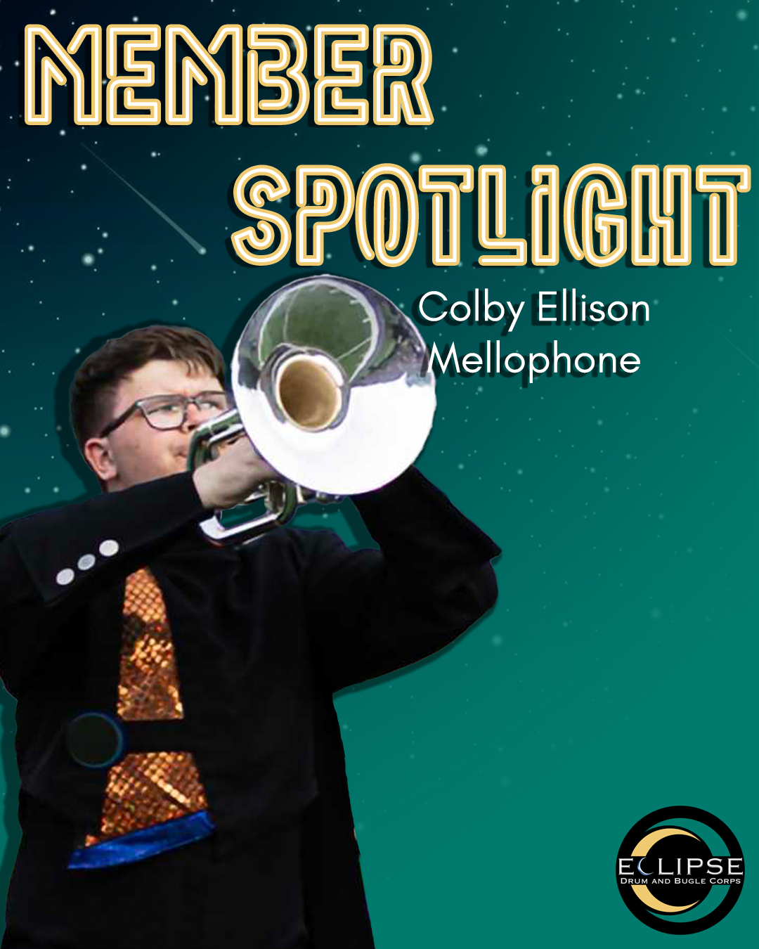 Colby is our Mellophone Section leader this year! Colby knows a variety of instruments, so we are excited he chose mellophone with Eclipse!